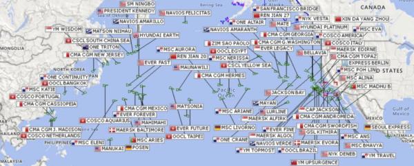 集裝箱船運營商已經(jīng)欣然接受了排隊新規(guī)。截至周一,已經(jīng)有109艘集裝箱船加入了PacMMS。隨著時間的推移,越來越多的集裝箱船從亞洲抵達,并在離洛杉磯/洛杉磯更遠的地方停泊。現(xiàn)在,在墨西哥恩塞納達(Ensenada)以南、舊金山以北和太平洋400多英里處,都有前往洛杉磯/長灘港的船只在停泊。