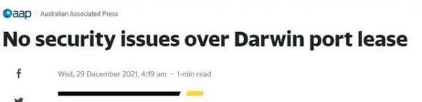此前,澳媒就放風稱由于中澳關(guān)系的不確定性,澳方即將公布情報機構(gòu)對中國企業(yè)租借澳達爾文港的審查結(jié)果可能顯示,而澳聯(lián)邦政府將以“危害國家安全”為由否決該合同。