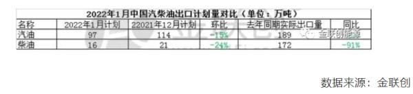 近日,2022年1月中國汽柴油出口計劃數據出爐,據悉,汽柴油出口計劃總量113萬噸,其中,汽油97萬噸,環(huán)比上月計劃下跌15%,同比去年同期實際出口跌幅近一半;柴油16萬噸,環(huán)比上月計劃下跌24%,同比去年同期實際出口大跌91%。
