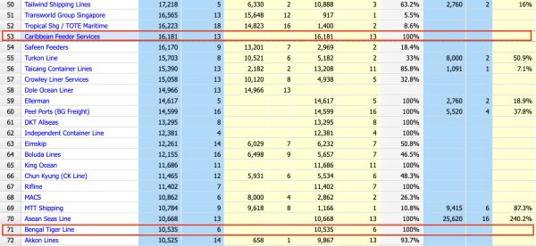 據(jù)了解,BTL于 1986 年在漢堡注冊(cè)成立,2009 年遷址新加坡。主要在印度次大陸、東南亞和阿拉伯灣周邊運(yùn)營。根據(jù) Alphaliner 的數(shù)據(jù),BTL 在全球集裝箱班輪運(yùn)力排行榜中名列第71位,運(yùn)力為10,535TEU,旗下運(yùn)營的6艘集裝箱船皆為租賃船。2018 年,該公司被新加坡私募股權(quán)公司 CMIA Capital Partners 從創(chuàng)始股東 Schoeller Holdings 和 Transnaval Schiffahrt 手中收購。